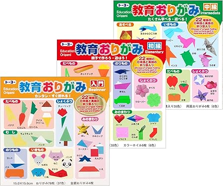 動物や乗り物など、テーマに沿った折り方見本が付いているセットなら、親子で一緒に色々な作品に挑戦できます。